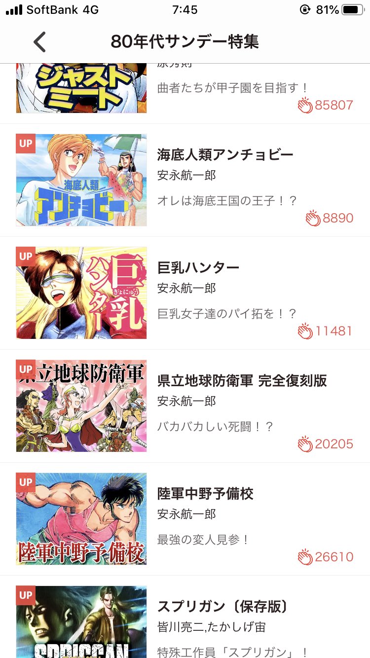 たけぽんfx アドセンスクリック4649 サンデーうぇぶりで80年代サンデー特集やってて海底人類アンチョビー 巨乳ハンター 県立地球防衛軍 陸軍中野予備校が読めるぞ