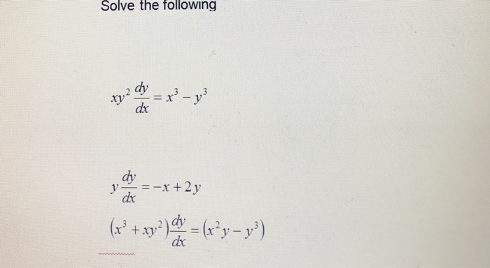 Solve The Following Xy 2 Dy Dx X 3 Y 3 Y Dy Dx Chegg Com